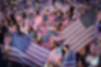 A crowd member glances to the side in a sea of American flag's in the United Center at the Democratic National Convention in Chicago on Wednesday, Aug. 21, 2024. (Addison Annis/The Columbia Chronicle)